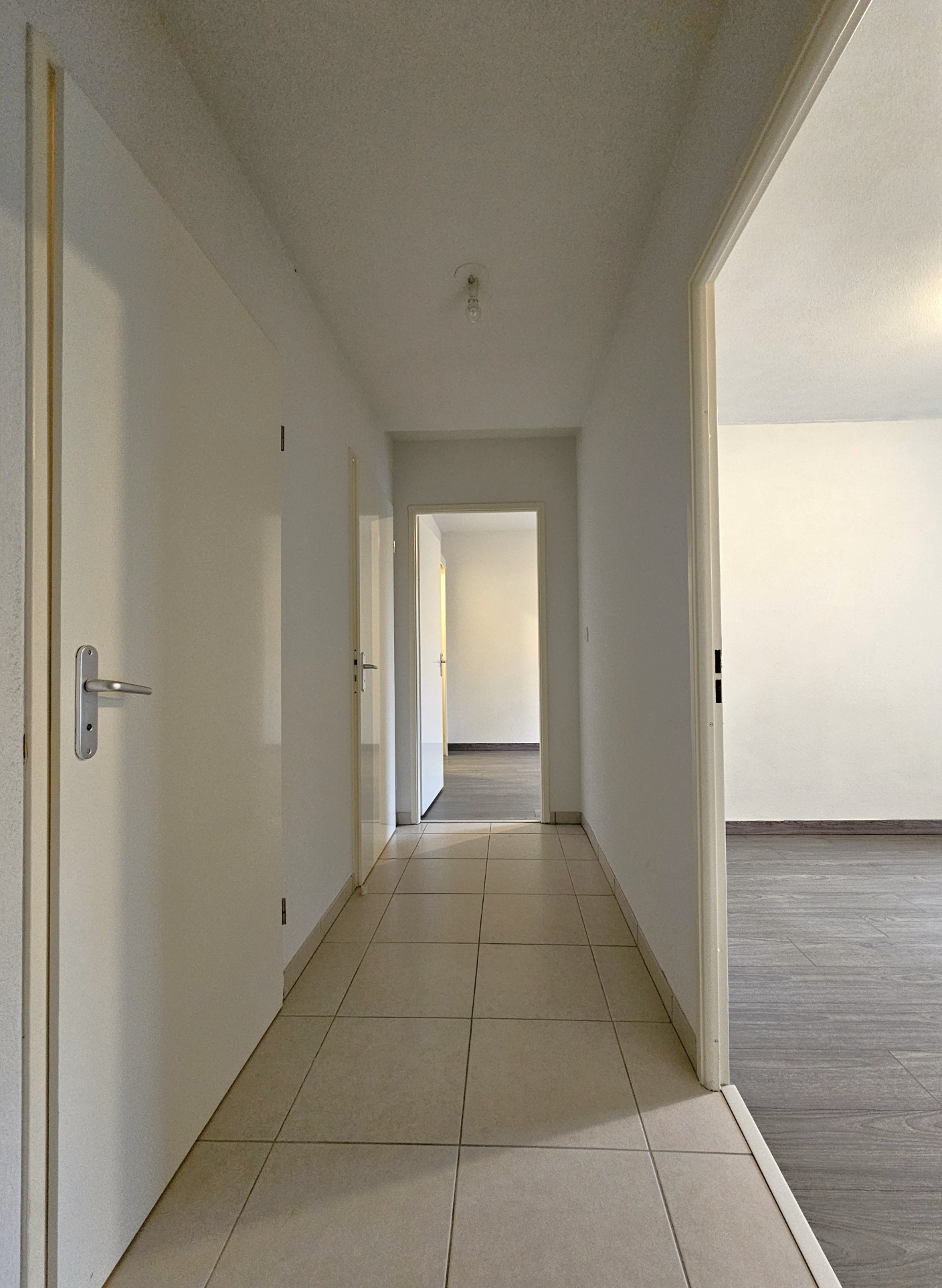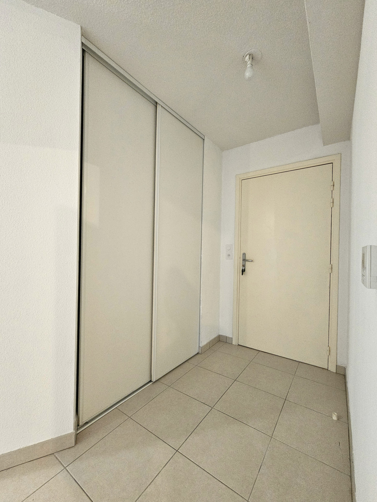Par les escaliers, vous accédez à l’appartement et dés votre arrivée, vous trouvez une agréable entrée avec un grand placard aménagé.