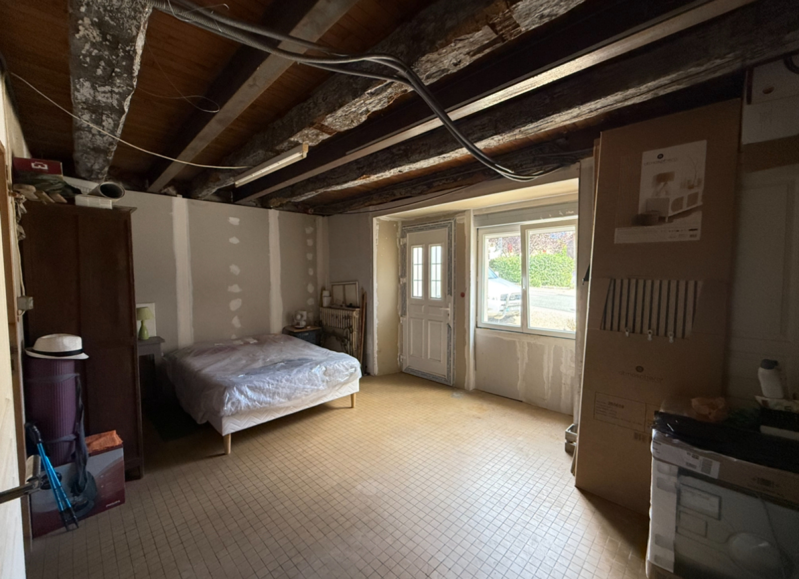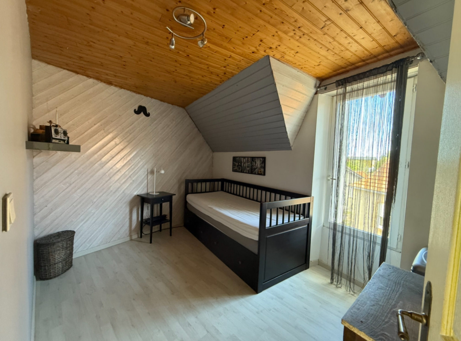Enfin, le troisième étage accueille un bureau et une grande chambre.
