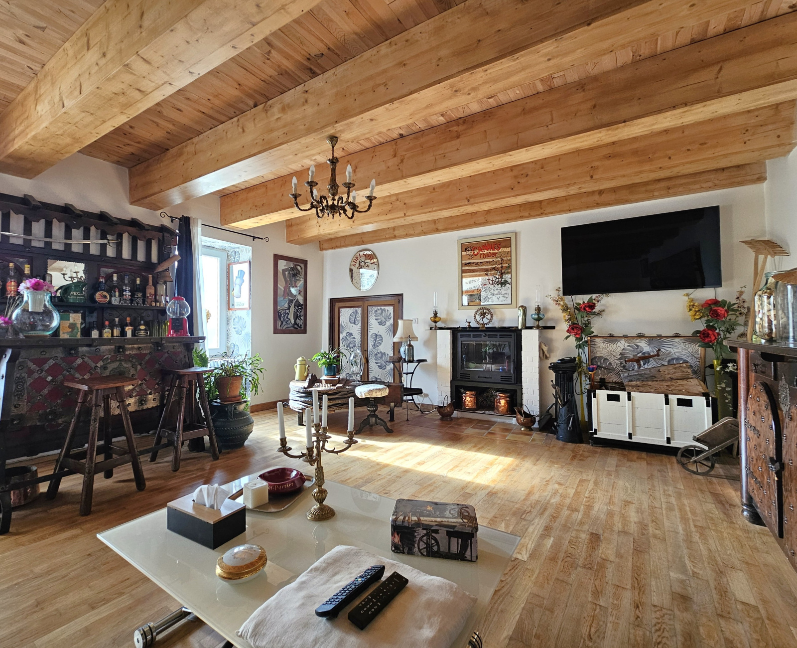 Parquet bois dans l’ensemble des pièces de la maison, volets électriques et volets bois