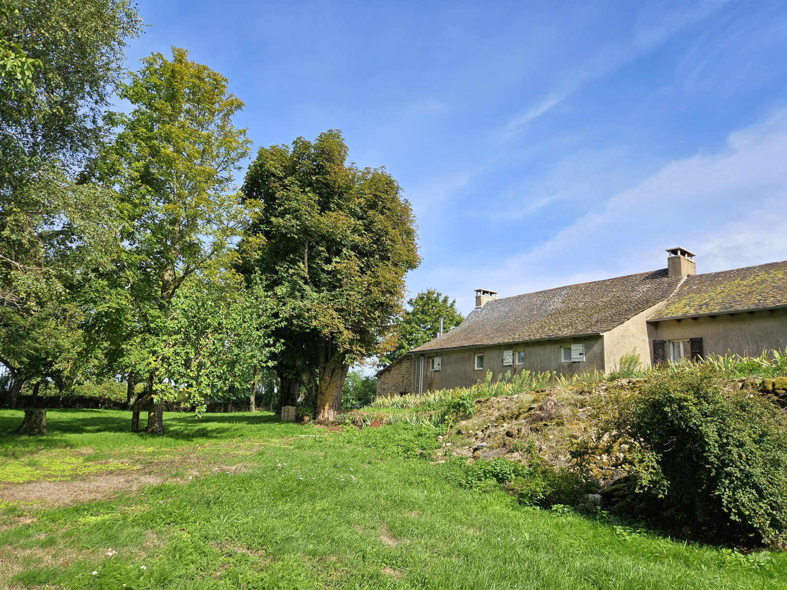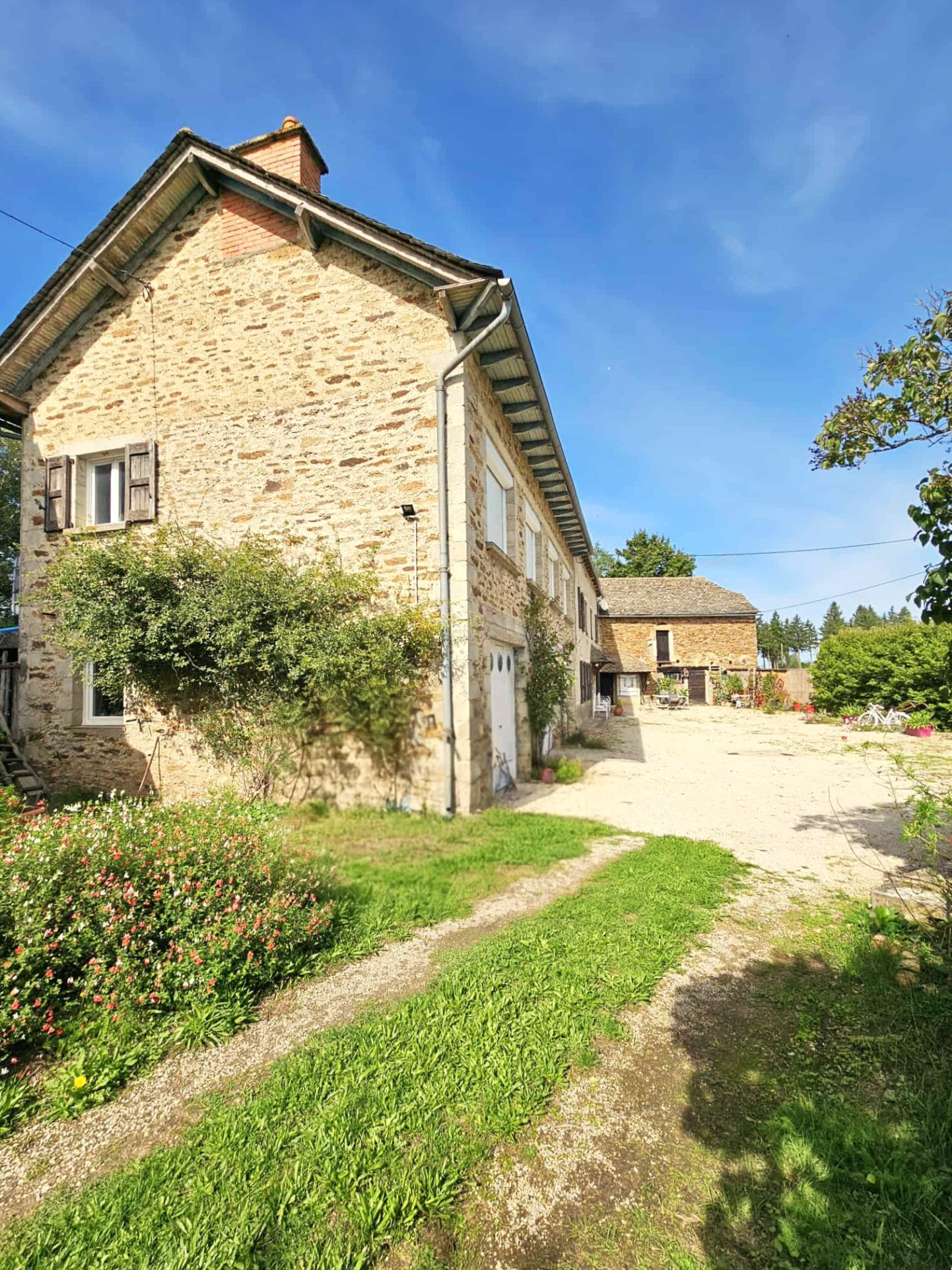 Sur un terrain arboré de 6388 m² venez découvrir cette grande maison d’habitation de 210 m² avec grange en pierres de schiste et gneiss, nombreuses dépendances et jardin.