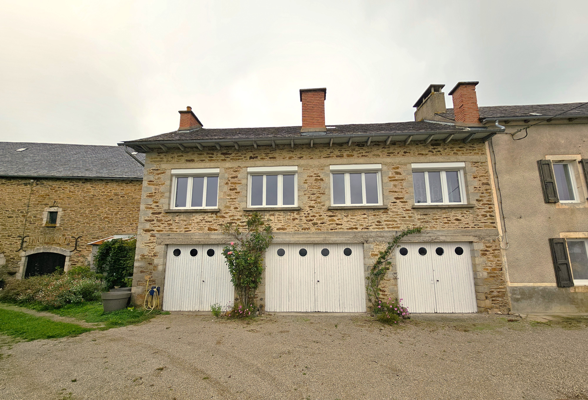 Toits en lauzes sur la maison d’habitation et ardoises sur les dépendances