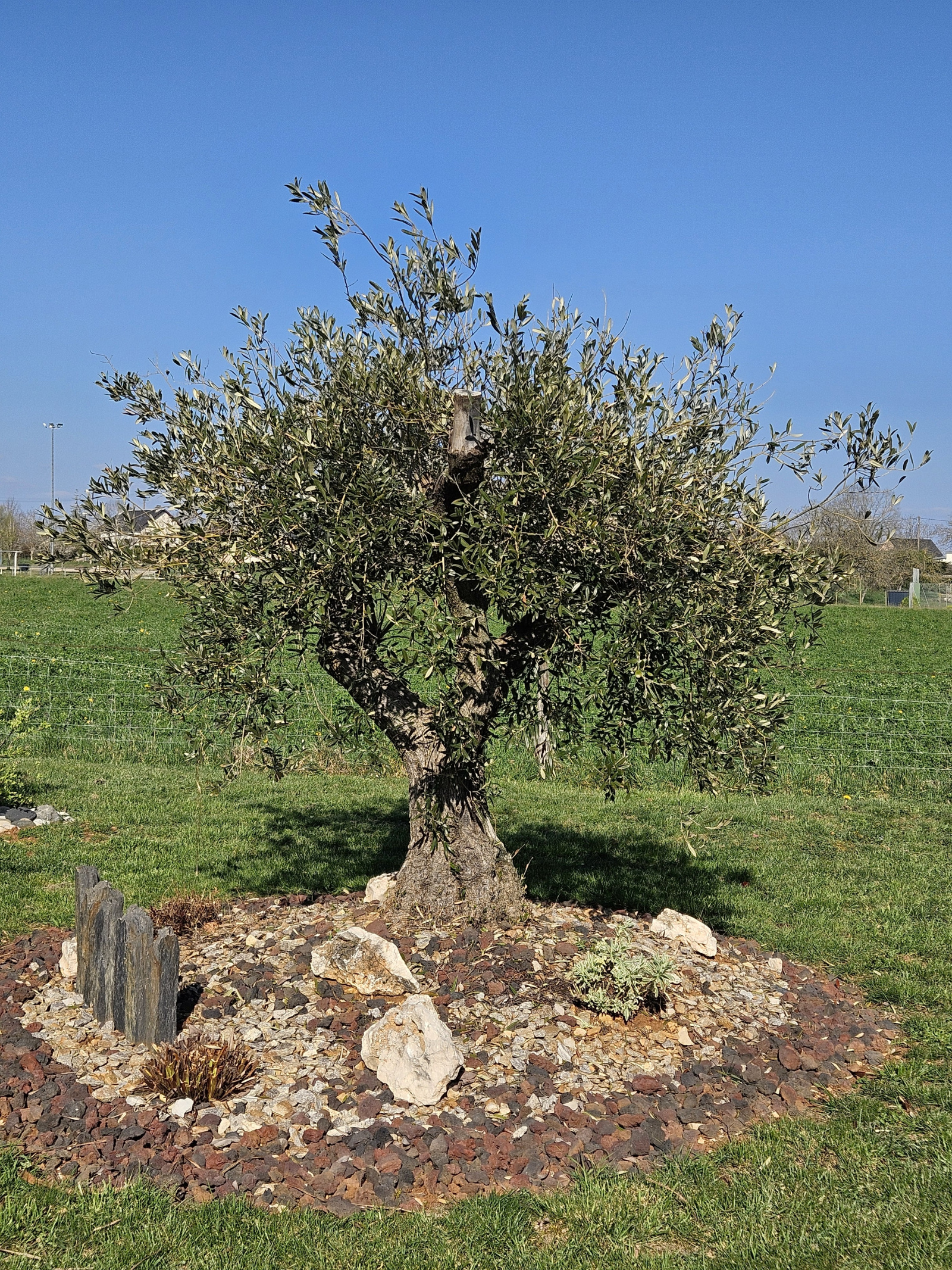 Jardin plat, clos et arboré avec entre autres un très bel Olivier...
